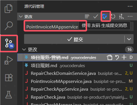 根据您暂存的 git 更改自动生成描述性提交消息。YouCode 会分析您暂存的文件并创建遵循最佳实践的约定式提交消息。