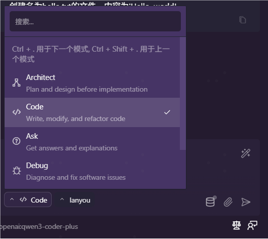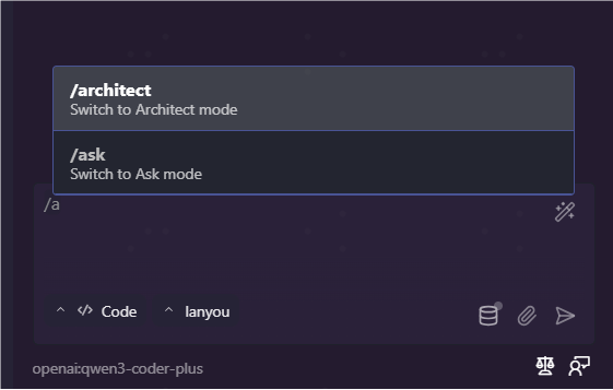 /architect、/ask、/debug或/code