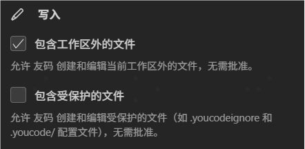 | 编辑文件 | 允许 YouCode 无需询问即可修改文件 | 高 |