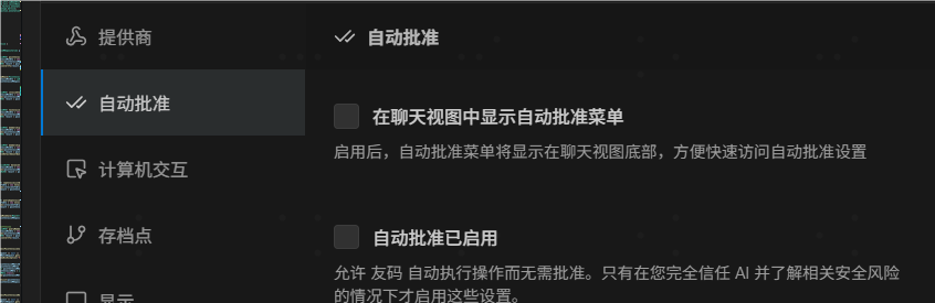 描述: “在 MCP 服务器视图中启用单个 MCP 工具的自动批准(需要此设置和工具的单独‘始终允许’复选框)”