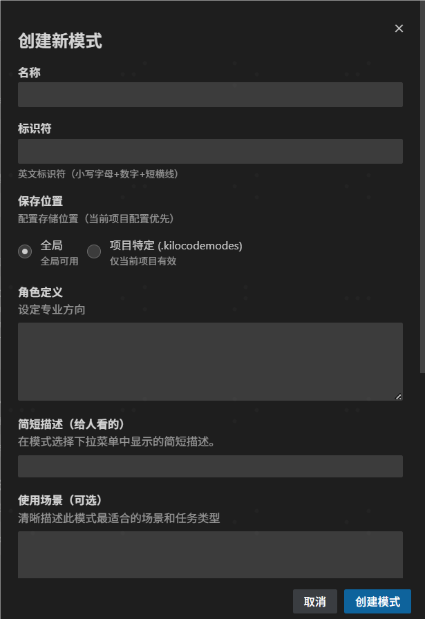 - 自定义指令: (可选) 添加特定于此模式的行为指南(出现在系统提示的末尾)