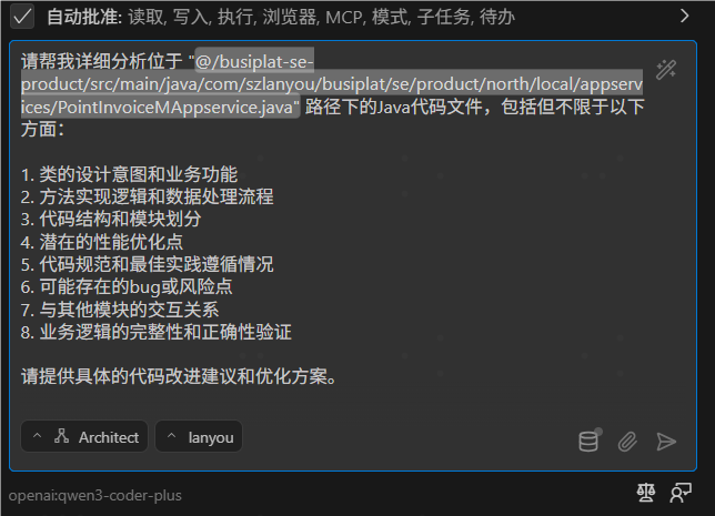 - 输入您的初始提示: 像往常一样在 YouCode 聊天输入框中输入您的请求。这可以是一个简单的问题、一个复杂的任务描述,或介于两者之间的任何内容。