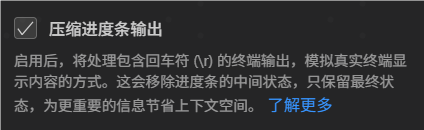 启用后,将处理包含回车符 (\r) 的终端输出,模拟真实终端显示内容的方式。这会移除进度条的中间状态,只保留最终状态,为更重要的信息节省上下文空间。