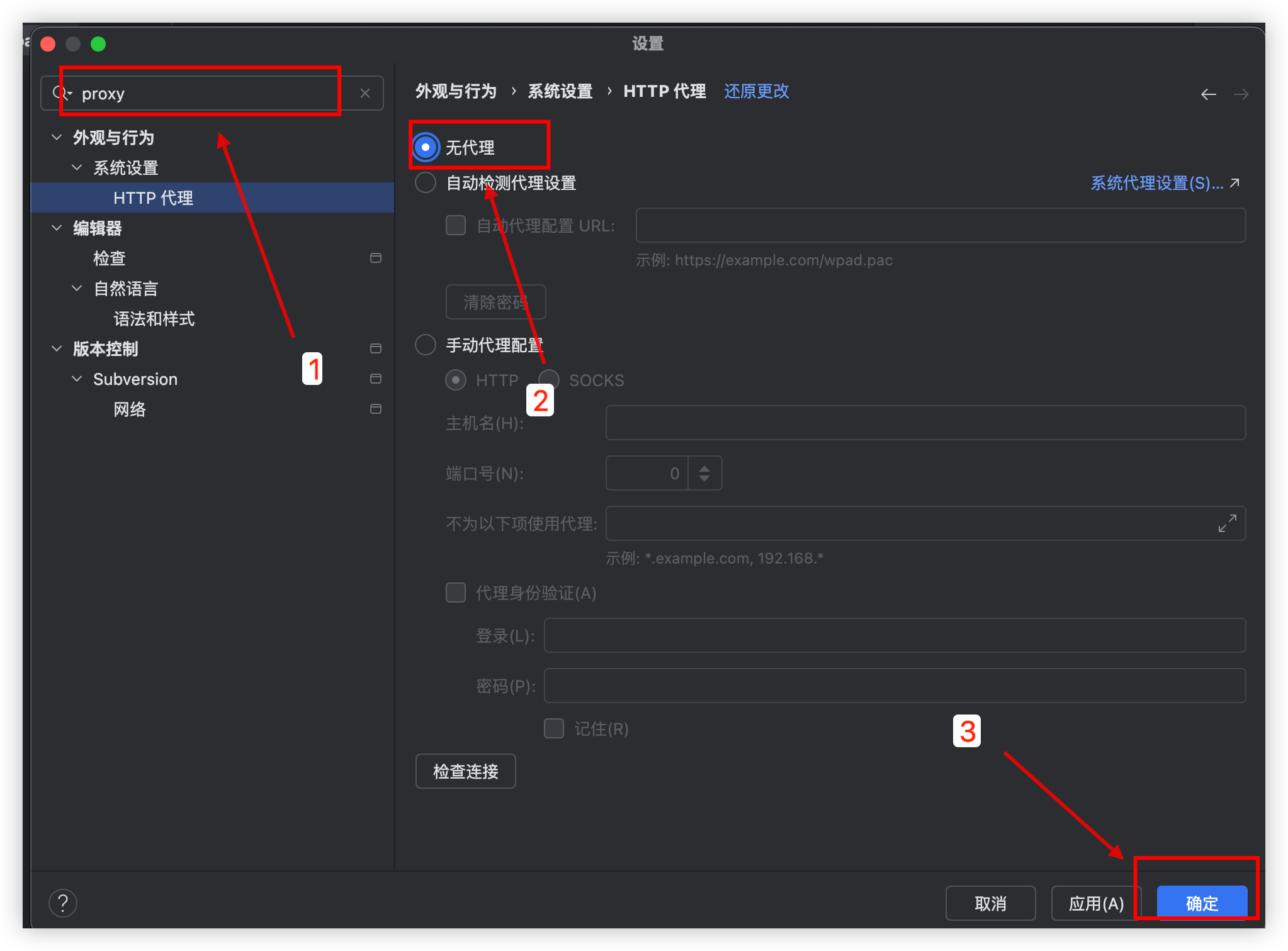 - 输入proxy,修改为无代理,点击确定,重新对话