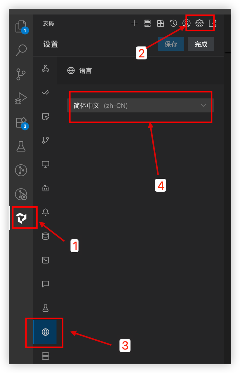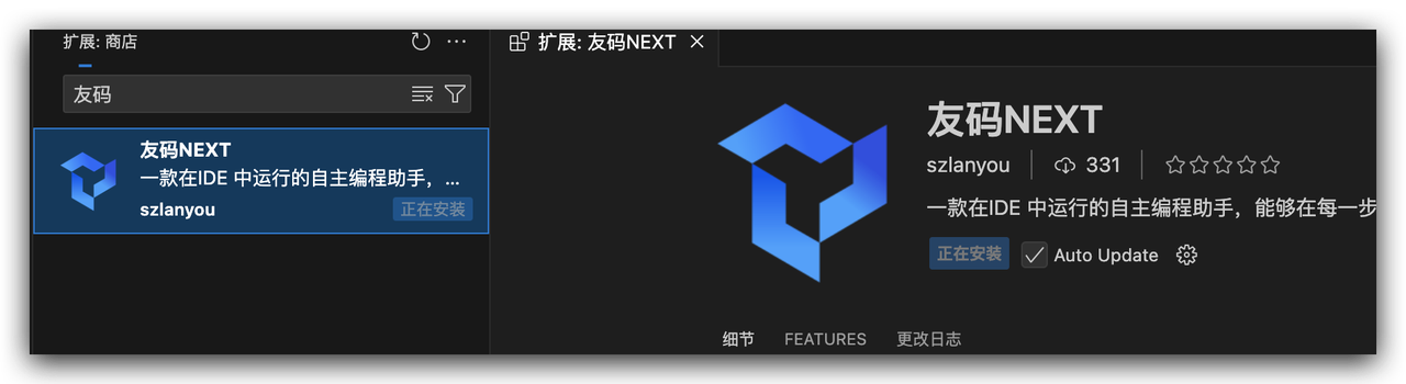 - 问题原因:vscode的语言设置默认为英文,导致友码安装后默认也使用了英文