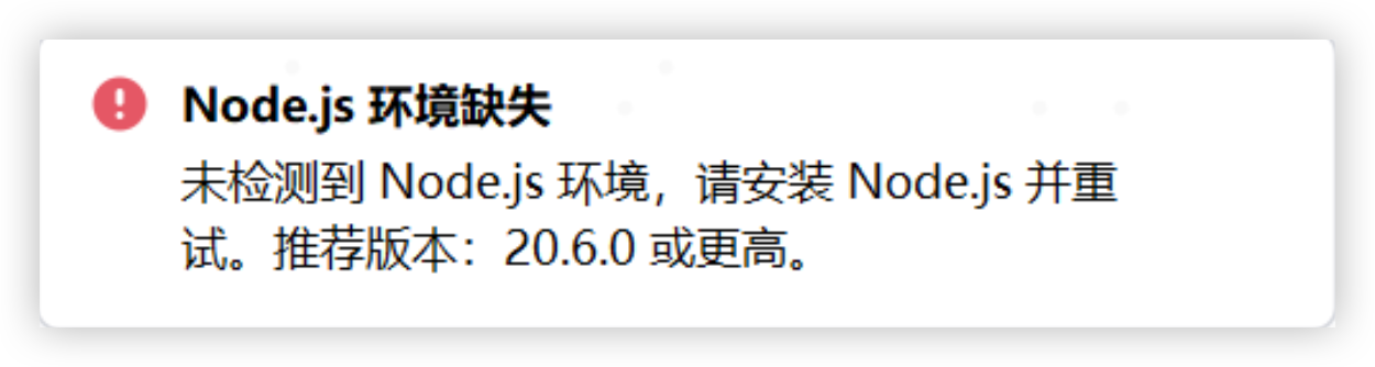 安装或者升级后报错Node.js缺失或者Node.js environment missing